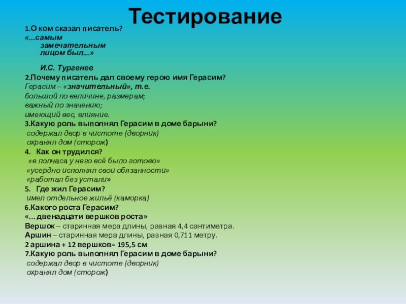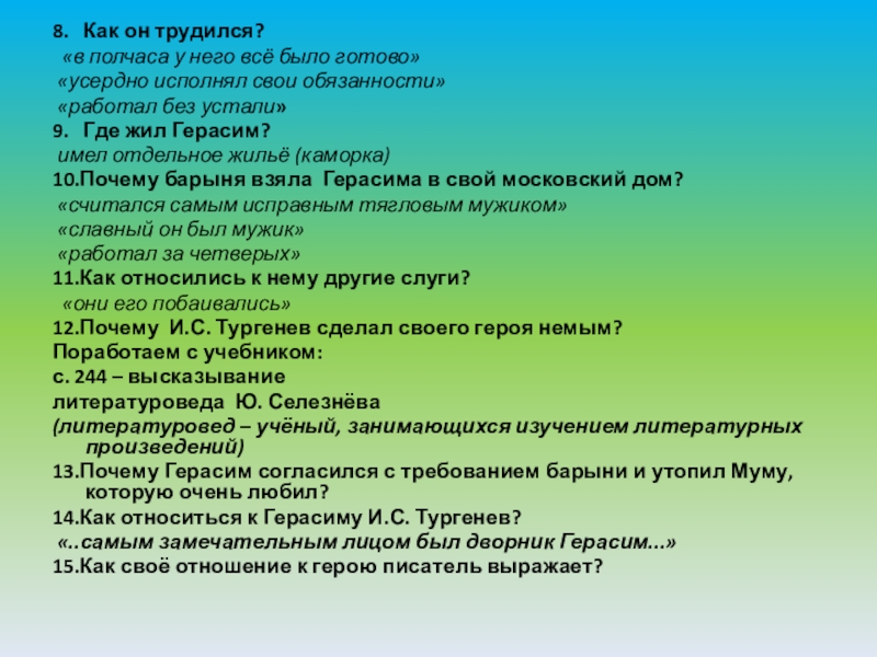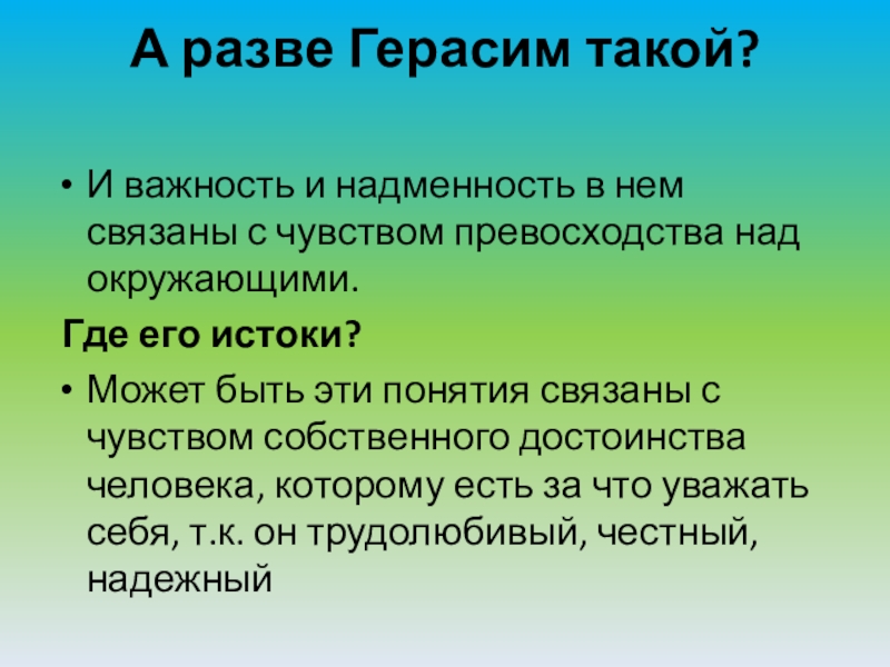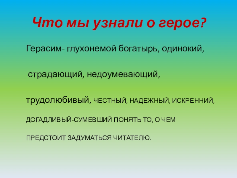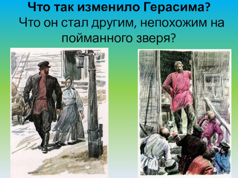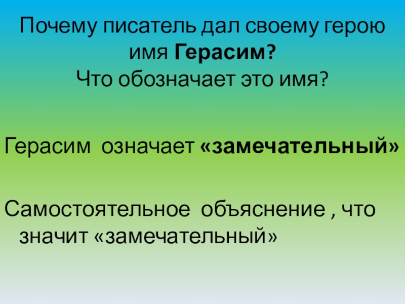 Слайд 13Почему писатель дал своему герою имя Герасим?