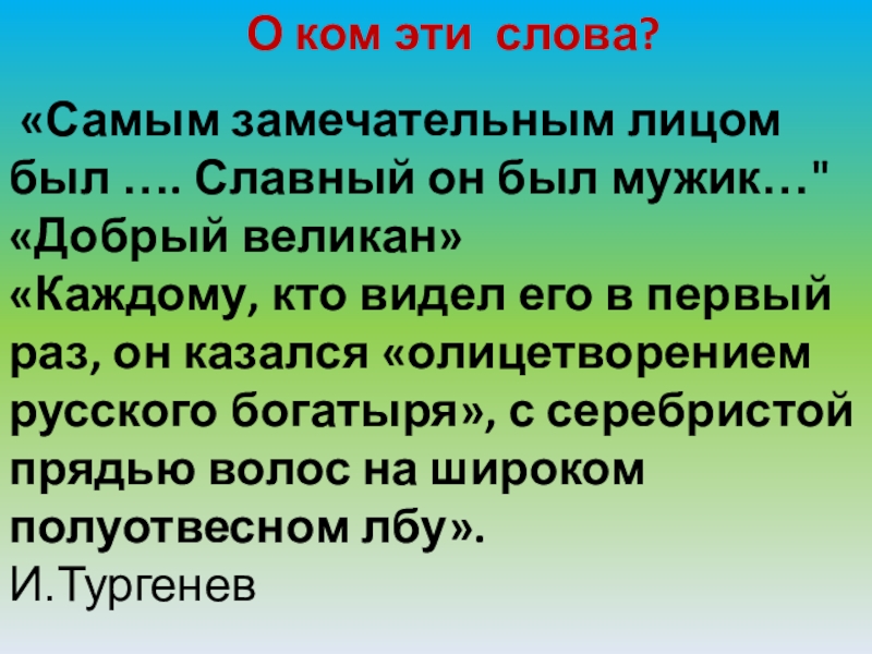 Слайд 7 «Самым замечательным лицом был …. Славный он был мужик…"