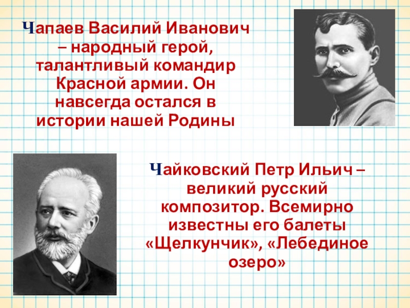 Чапаев Василий Иванович – народный герой, талантливый командир Красной армии. Он навсегда остался в истории нашей Родины