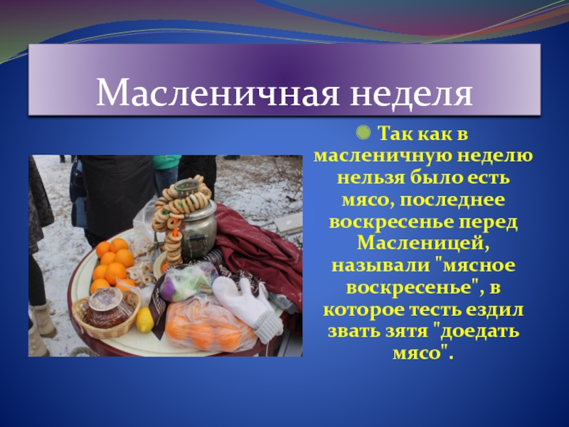 Так как в масленичную неделю нельзя было есть мясо, последнее
