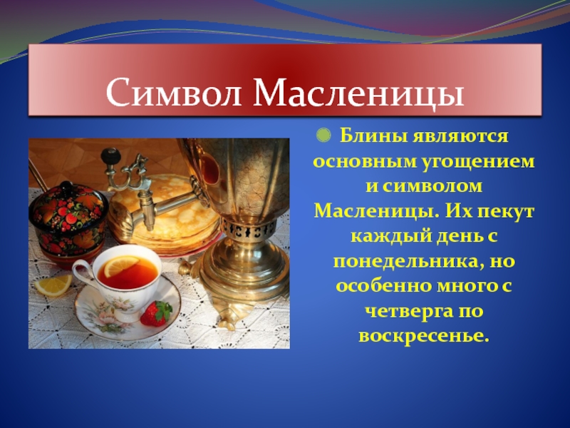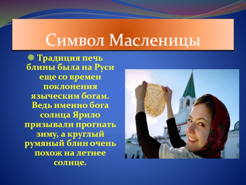 языческим богам. Ведь именно бога солнца Ярило призывали прогнать зиму, а круглый румяный блин очень похож на летнее солнце.