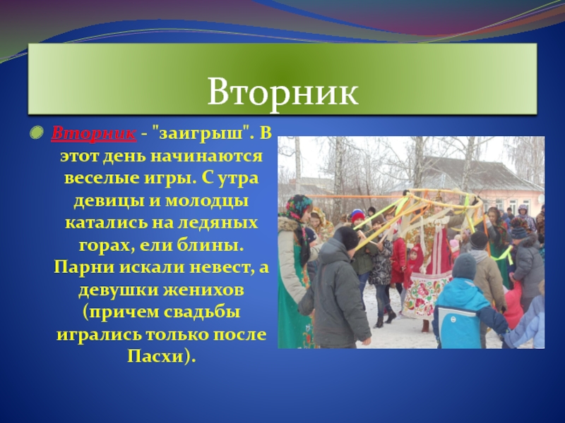 Вторник - "заигрыш". В этот день начинаются веселые игры. С утра