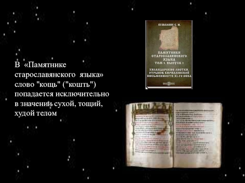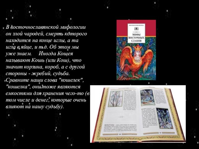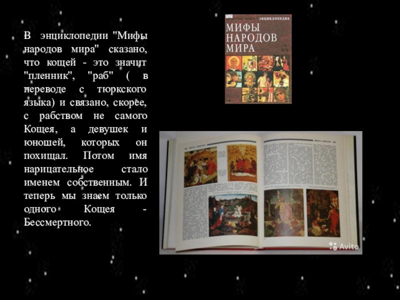 Слайд 21В энциклопедии "Мифы народов мира" сказано, что кощей - это значит
