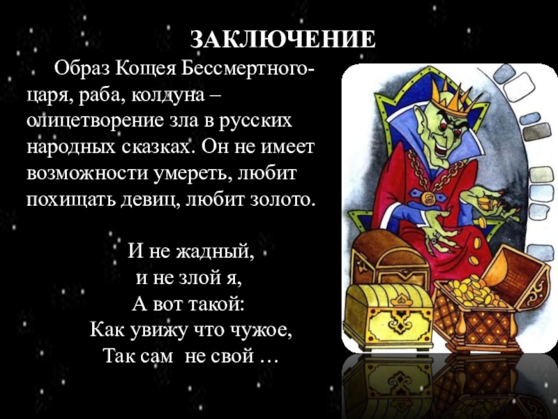 Образ Кощея Бессмертного- царя, раба, колдуна – олицетворение зла в