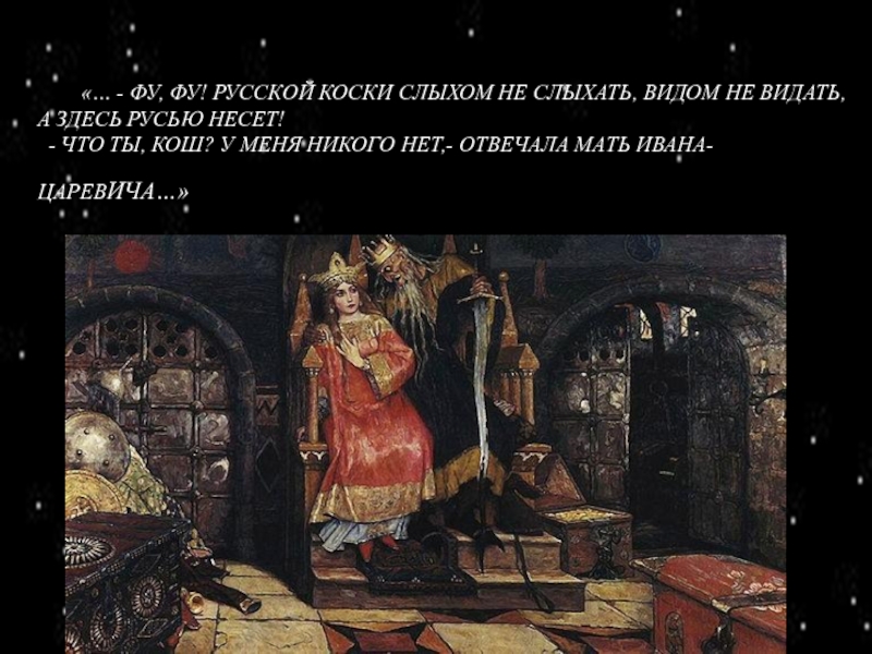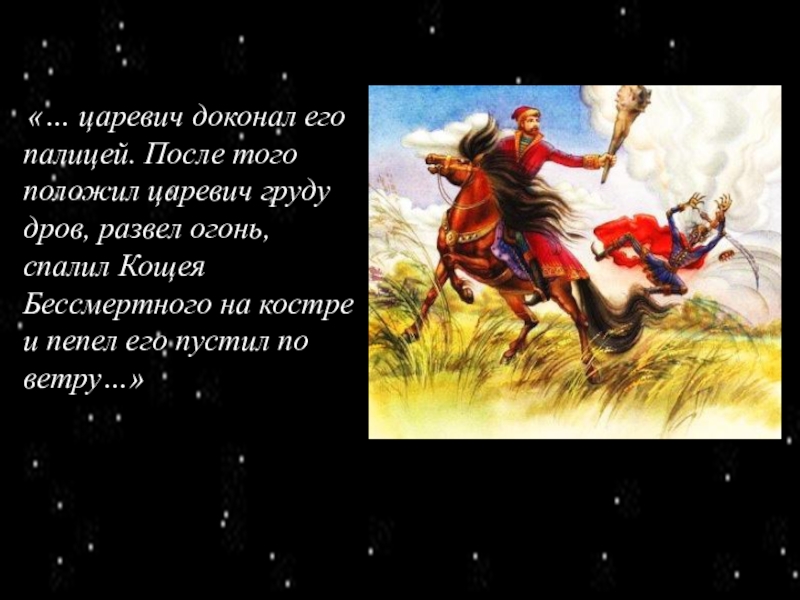 Слайд 13 «…конь Ивана-царевича ударил со всего размаху копытом Кощея Бессмертного и