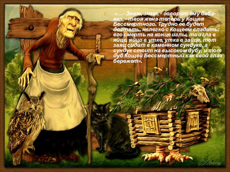 Слайд 17 «…- Знаю, знаю, - говорит ему баба-яга, - твоя жена теперь