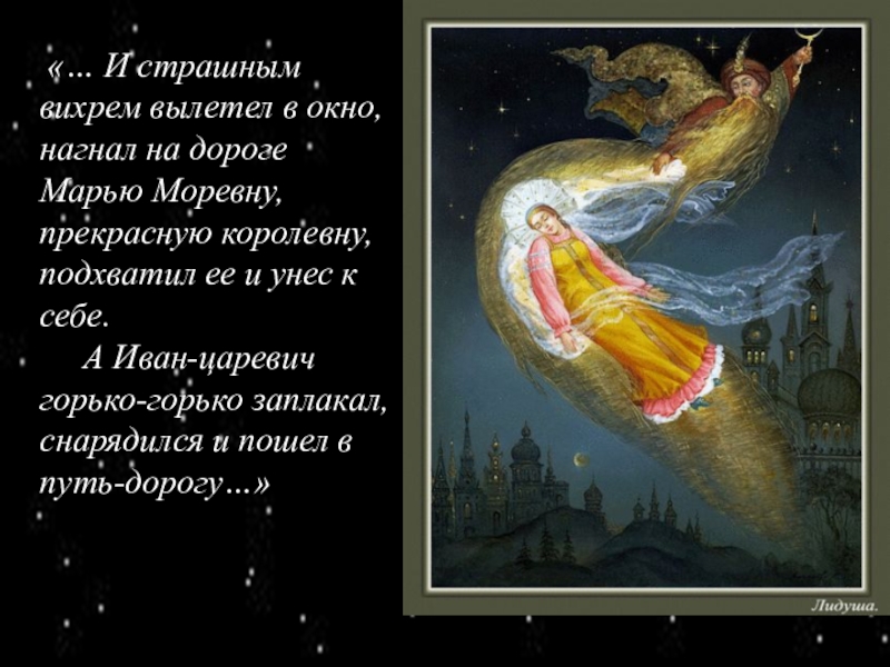 Слайд 11 «… И страшным вихрем вылетел в окно, нагнал на дороге Марью