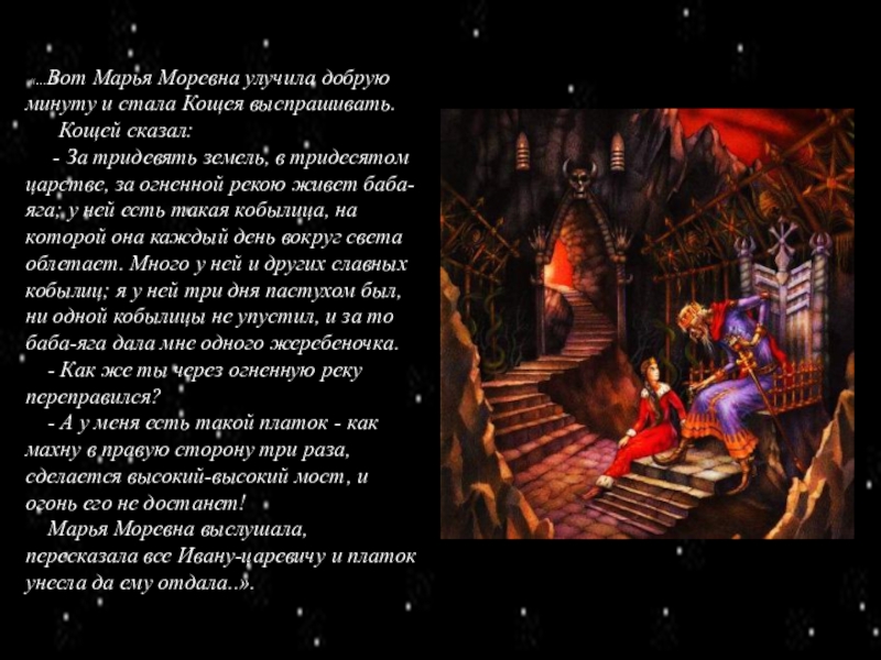 «…Вот Марья Моревна улучила добрую минуту и стала Кощея
