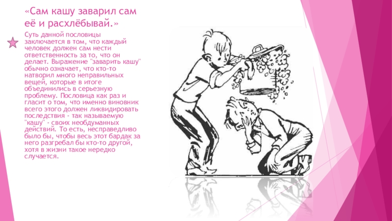 Слайд 5«Сам кашу заварил сам её и расхлёбывай.»