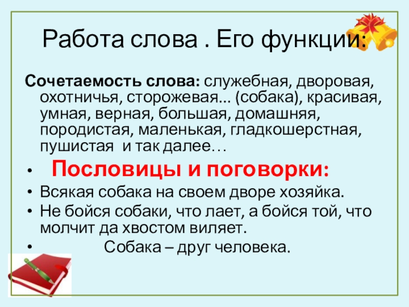 Сочетаемость слова: служебная, дворовая, охотничья, сторожевая... (собака),