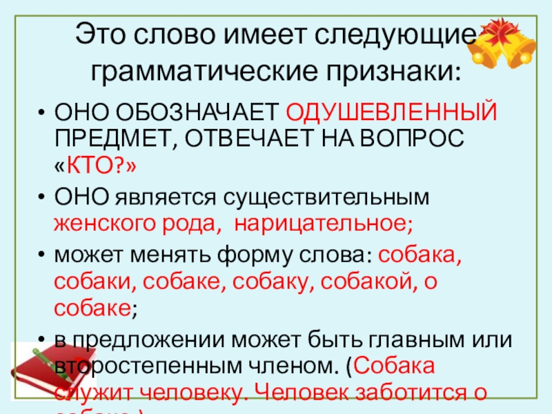 может менять форму слова: собака, собаки, собаке, собаку, собакой, о собаке;