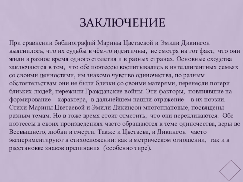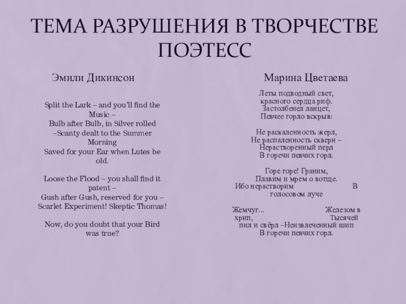Творчество Эмили Дикинсон и Марины Цветаевой неразрывно