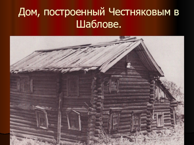 Слайд 5Дом, построенный Честняковым в Шаблове.