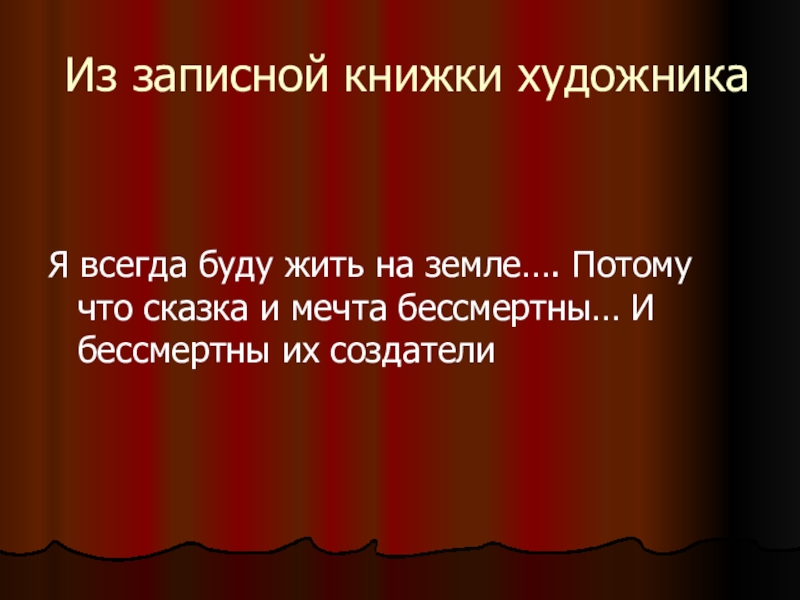 Я всегда буду жить на земле…. Потому что сказка и мечта бессмертны… И бессмертны их создатели