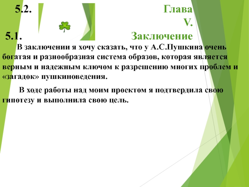 В заключении я хочу сказать, что у А.С.Пушкина очень богатая и разнообразная система образов, которая является верным и надежным ключом к разрешению многих проблем и «загадок» пушкиноведения.