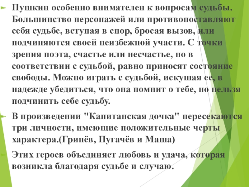 Слайд 22Пушкин особенно внимателен к вопросам судьбы. Большинство персонажей или противопоставляют себя