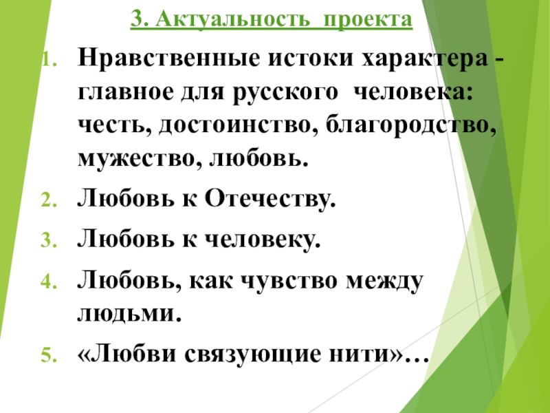 Это любовь к родным, Отечеству и между молодыми людьми.