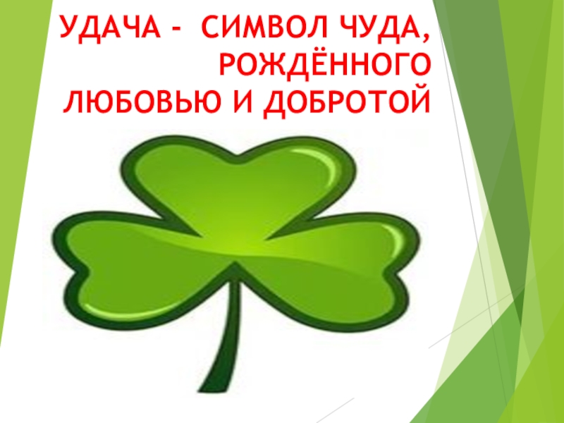 Слайд 20УДАЧА - СИМВОЛ ЧУДА, РОЖДЁННОГО ЛЮБОВЬЮ И ДОБРОТОЙ