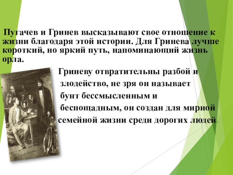 Слайд 15 Пугачев и Гринев высказывают свое отношение к жизни благодаря этой