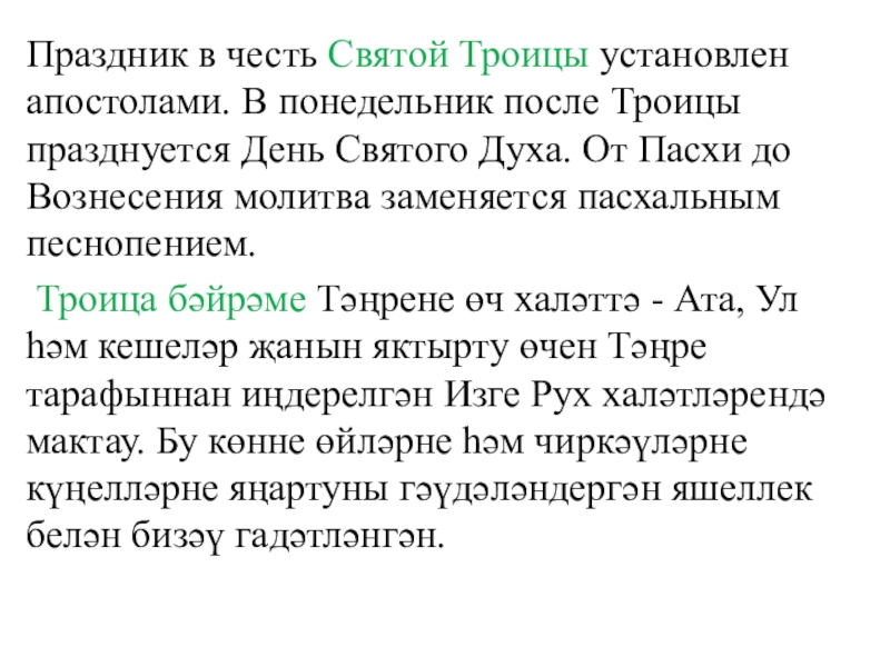 Слайд 12Праздник в честь Святой Троицы установлен апостолами. В понедельник после Троицы