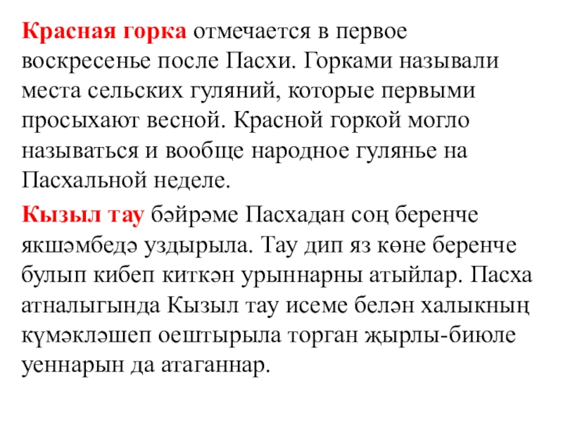 Слайд 10Красная горка отмечается в первое воскресенье после Пасхи. Горками называли места