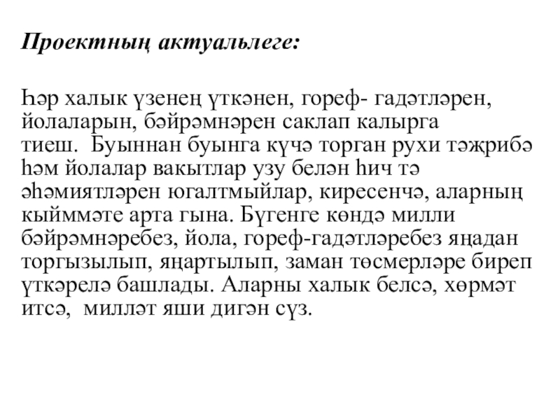 Һәр халык үзенең үткәнен, гореф- гадәтләрен, йолаларын, бәйрәмнәрен