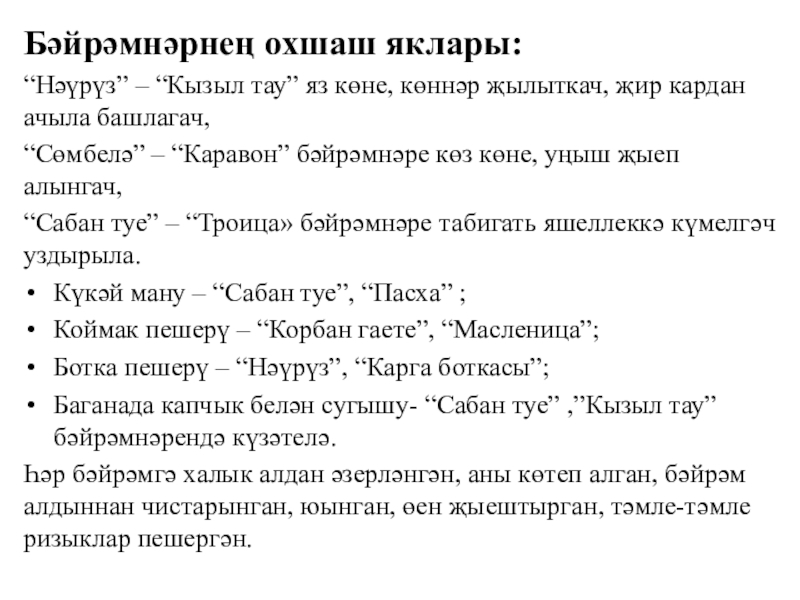 Слайд 22Бәйрәмнәрнең охшаш яклары: