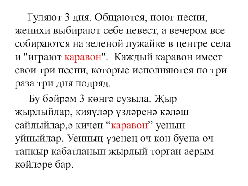 бүгенгесе көндә татар һәм рус бәйрәмнәре- нең ничек бәйрәм ителүен белү