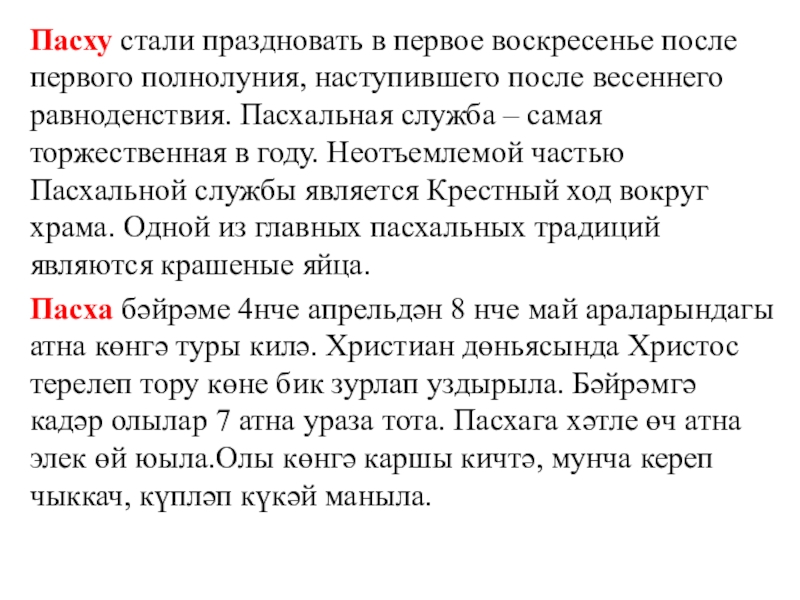 Слайд 14Пасху стали праздновать в первое воскресенье после первого полнолуния, наступившего после