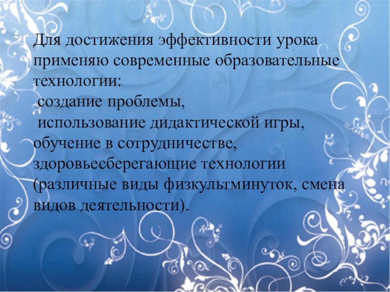 Слайд 5Для достижения эффективности урока применяю современные образовательные технологии: