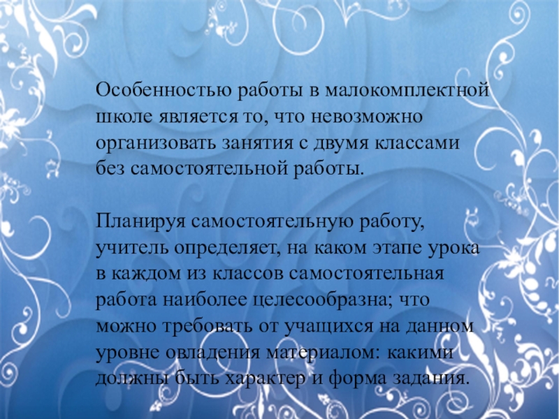 Слайд 4Особенностью работы в малокомплектной школе является то, что невозможно организовать занятия