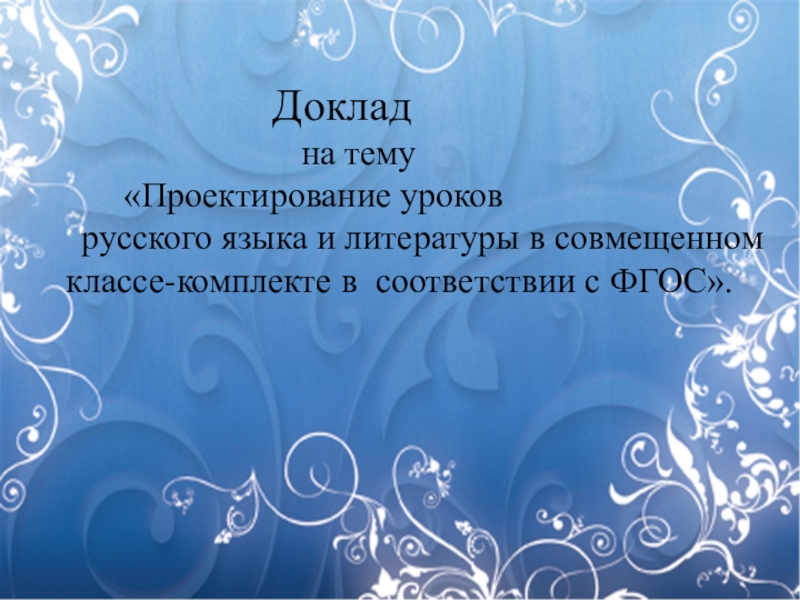 русского языка и литературы в совмещенном классе-комплекте в соответствии с ФГОС».