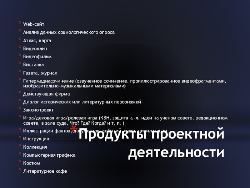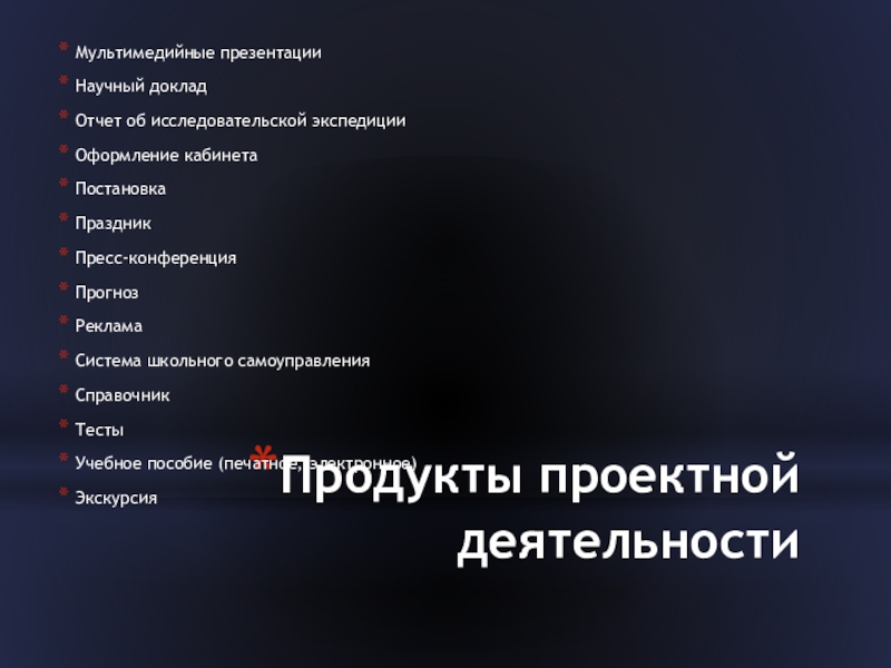 Слайд 8Продукты проектной деятельности