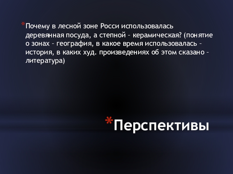 керамическая? (понятие о зонах – география, в какое время использовалась – история, в каких худ. произведениях об этом сказано – литература)