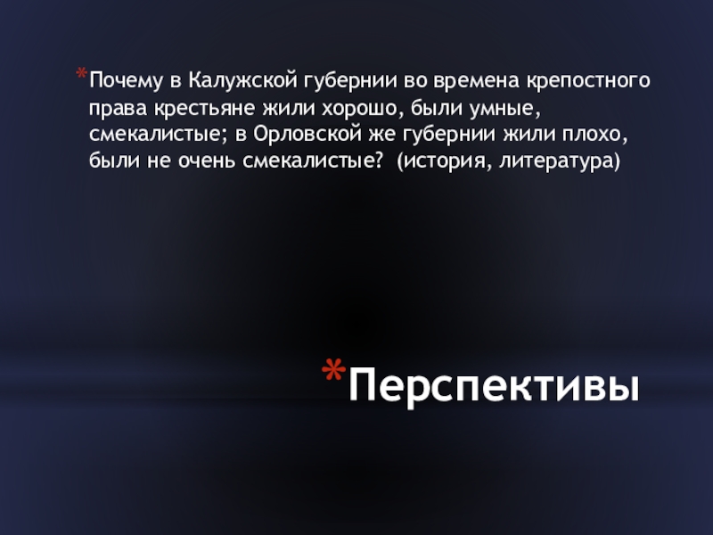были умные, смекалистые; в Орловской же губернии жили плохо, были не очень смекалистые? (история, литература)