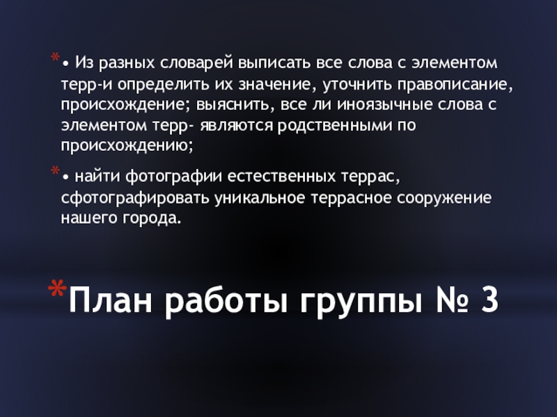 Слайд 19План работы группы № 3