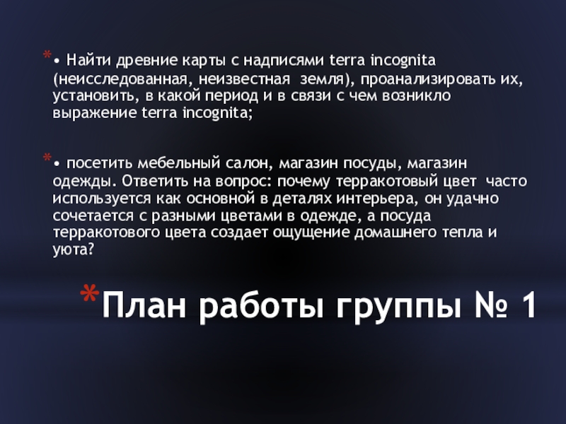 Слайд 17План работы группы № 1