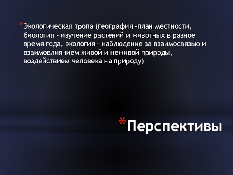 Экологическая тропа (география –план местности, биология – изучение растений и животных