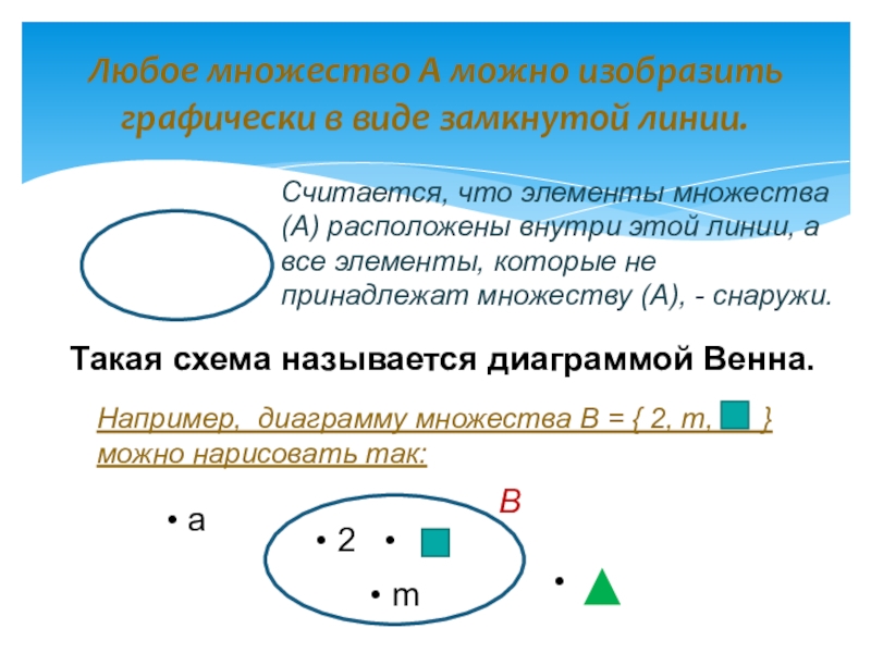 Например, диаграмму множества В = { 2, m, } можно нарисовать так: