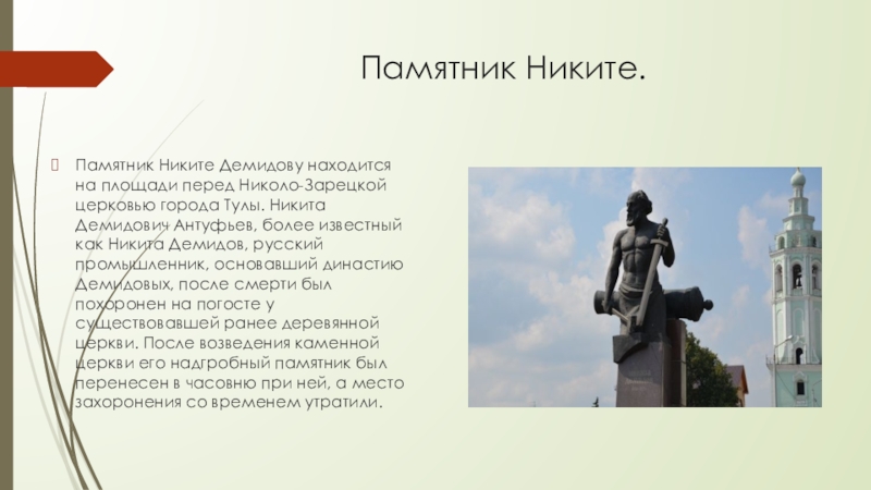 Памятник Никите Демидову: http://foretime.ru/demidov-tyla/