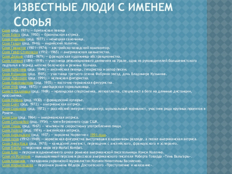 4) https://ru.wikipedia.org/wiki/%D0%A1%D0%BE%D0%BD%D1%8F_(%D0%B8%D0%BC%D1%8F)