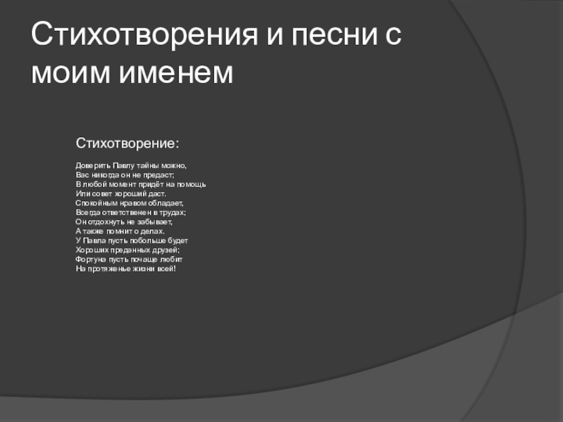 Бесцветное имя. Неявно выраженные признаки (кроме, пожалуй, качеств «тихий» и «кроткий», то есть консервативный, основательный, не любящий перемен) могут трактоваться как показатели склонности Павла к замкнутости.