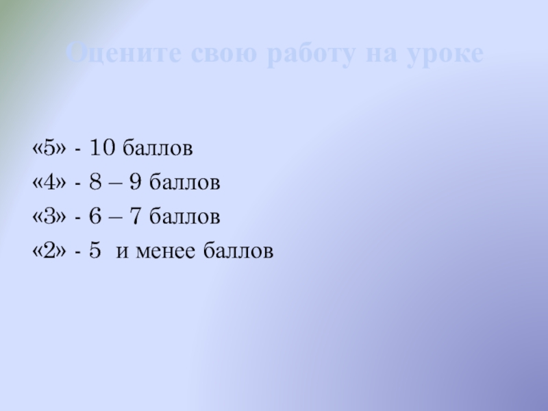 Слайд 30Оцените свою работу на уроке
