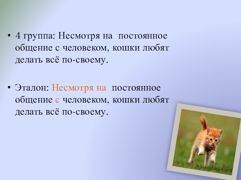 4 группа: Несмотря на постоянное общение с человеком, кошки любят делать