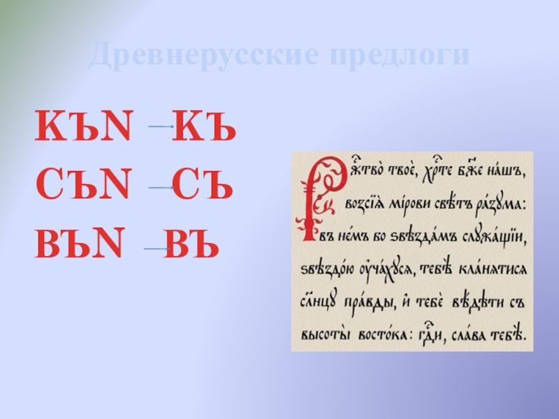 Слайд 17Древнерусские предлоги