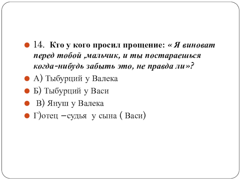 Слайд 2514. Кто у кого просил прощение: « Я виноват перед тобой