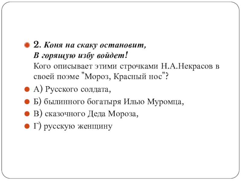 Н.А.Некрасов в своей поэме "Мороз, Красный нос"?
