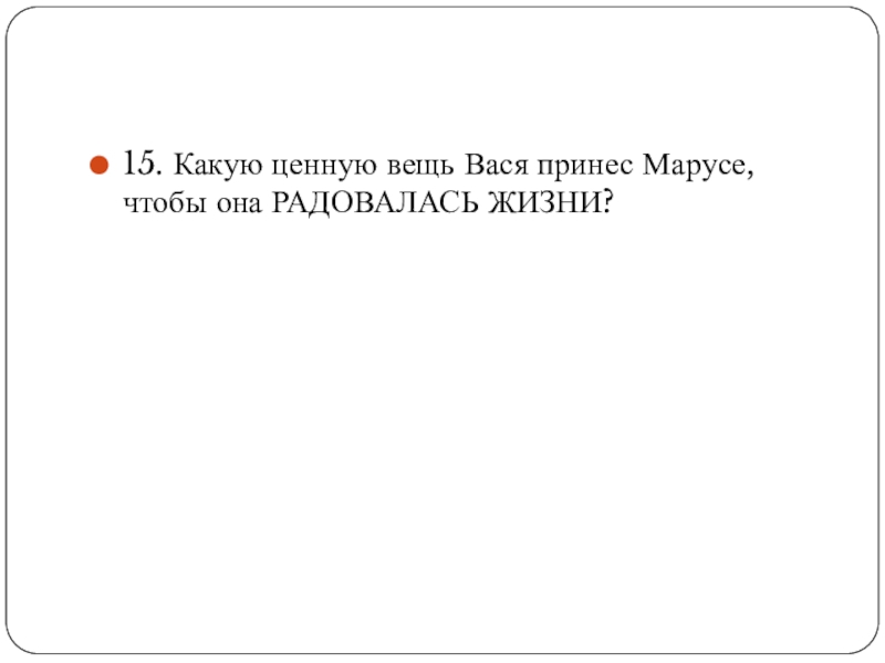 Слайд 2615. Какую ценную вещь Вася принес Марусе, чтобы она РАДОВАЛАСЬ ЖИЗНИ?