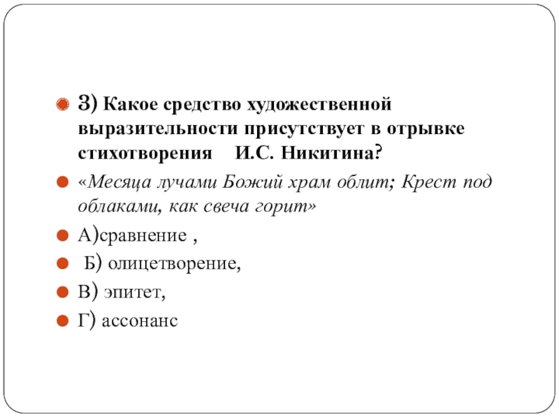 Слайд 43) Какое средство художественной выразительности присутствует в отрывке стихотворения И.С.