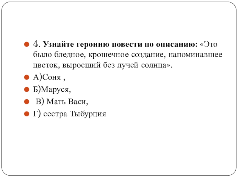 Слайд 154. Узнайте героиню повести по описанию: «Это было бледное, крошечное создание, напоминавшее